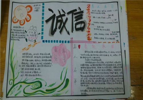 另外通过早操、晚自习、日常生活等日常行为规范引导,通过手抄报比赛、学生座谈会及等形式,向那些诚信逐渐被无知欲望所吞噬,向那些在校园里不讲诚信的现象说“不”, 让学生自我教育,自我完善的同时,自觉加强诚信建设,引导学生在学习、生活中处处实践“诚信承诺”。把诚信真正的贯彻到行动中去,以自己的一言一行,履行自己的“诚信承诺”。